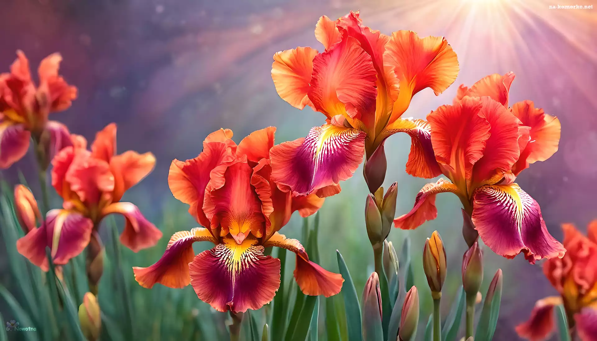 Kwiaty, Grafika AI, Czerwone, Irysy na Komórkę