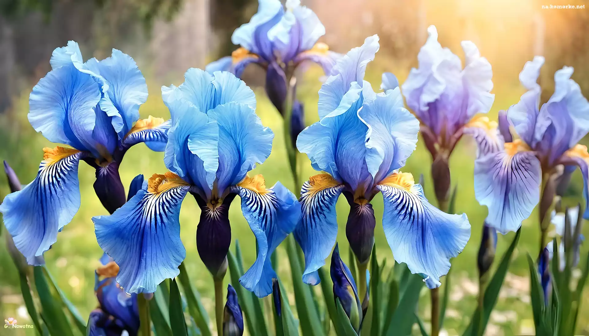 Kwiaty, Grafika AI, Niebieskie, Irysy na Komórkę