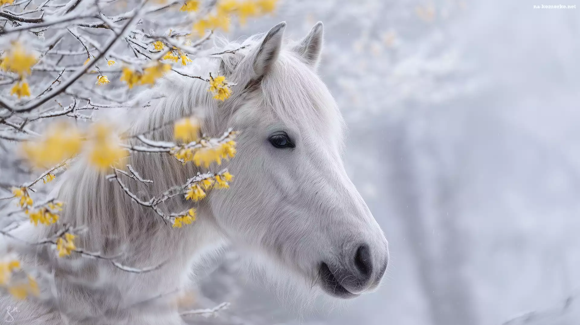 Gałązki, Grafika AI, Biały, Koń na Komórkę