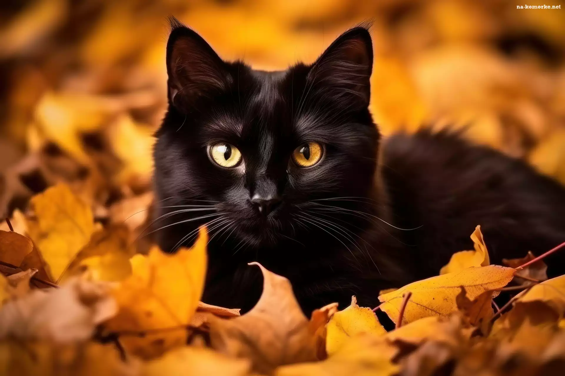 Liście, Grafika AI, Czarny, Kot na Komórkę