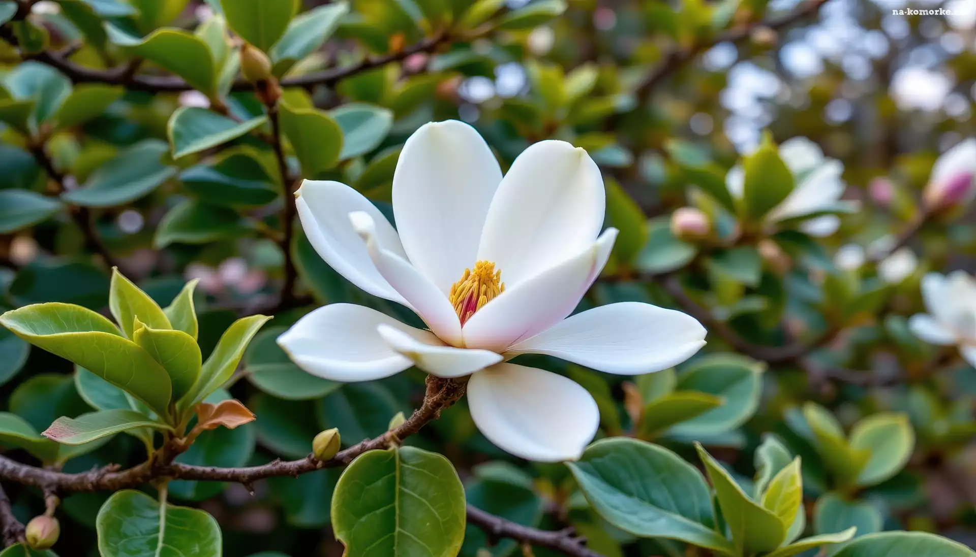 Liście, Grafika AI, Magnolia, Kwiat na Komórkę