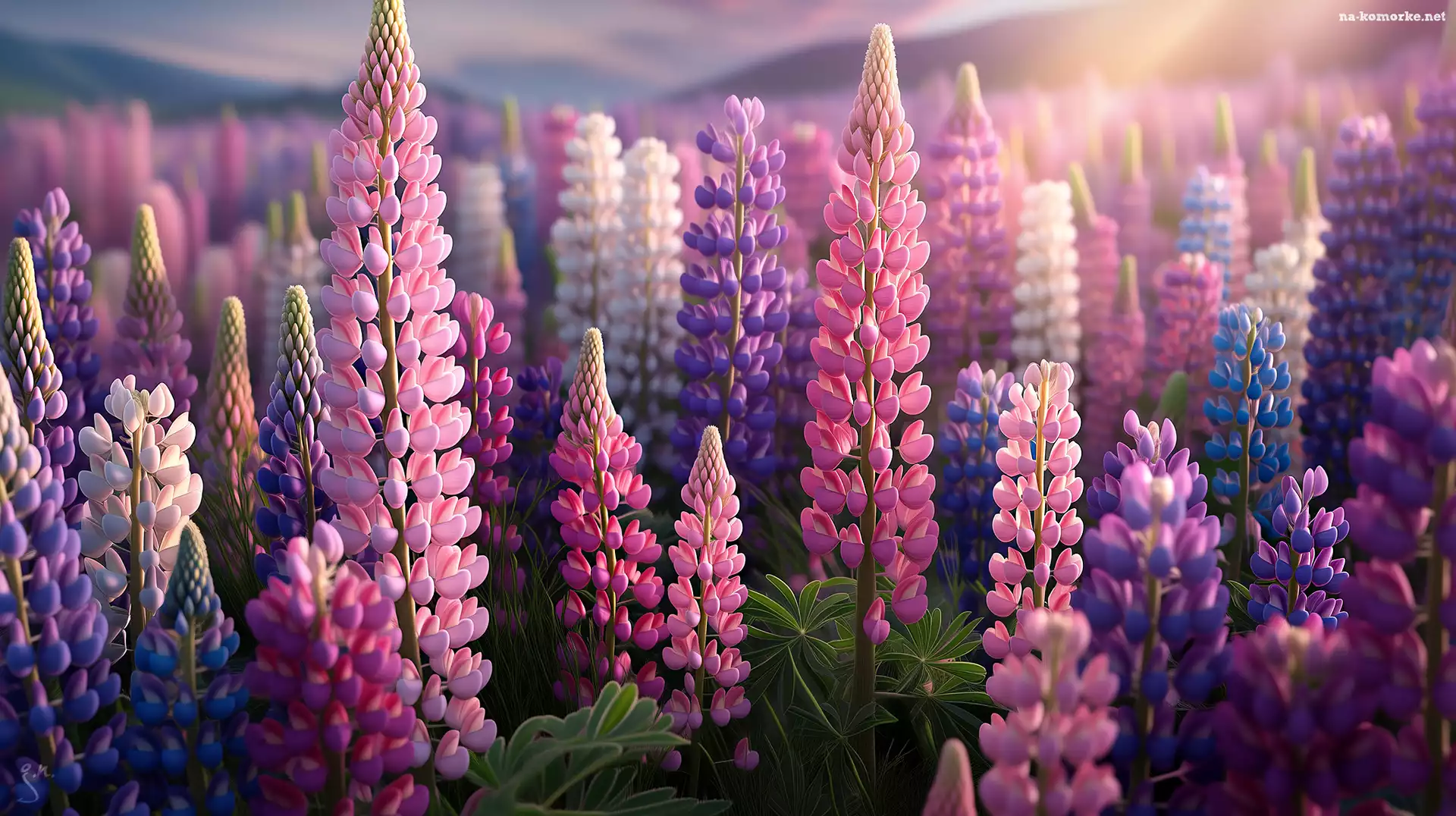 Łubin, Grafika AI, Kolorowe, Kwiaty na Komórkę