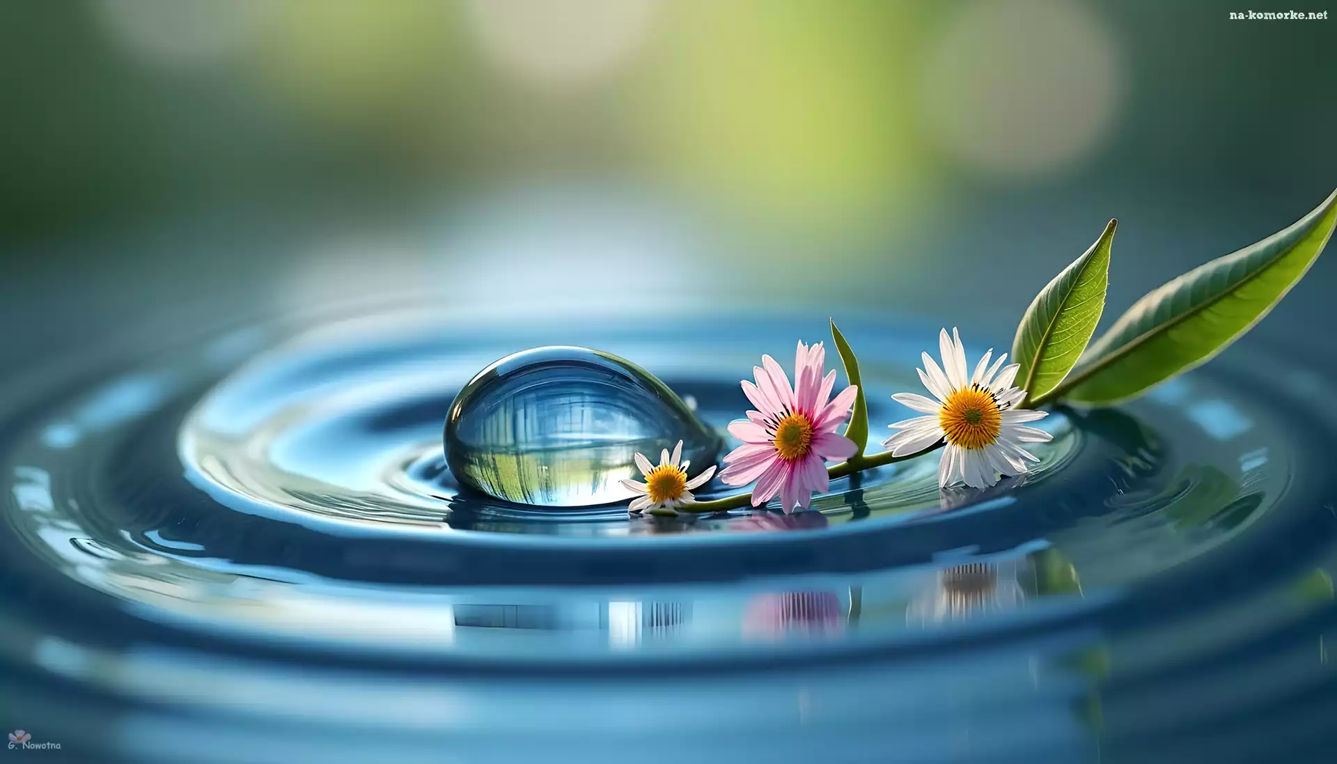 Woda, Grafika AI, Kropla, Kwiaty na Komórkę