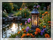 Ogród, Grafika AI, Lampion, Kwiaty na Komórkę