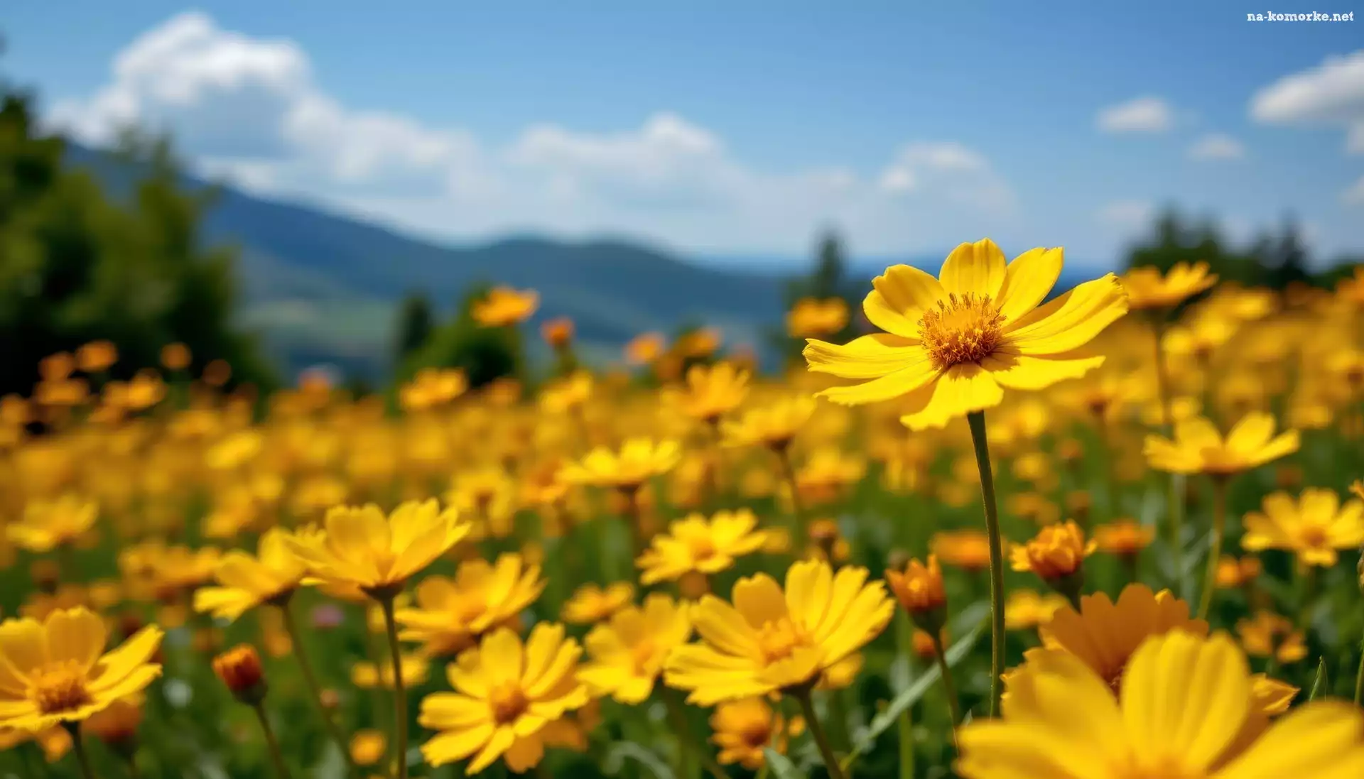 Łąka, Grafika AI, Żółte, Kwiaty na Komórkę