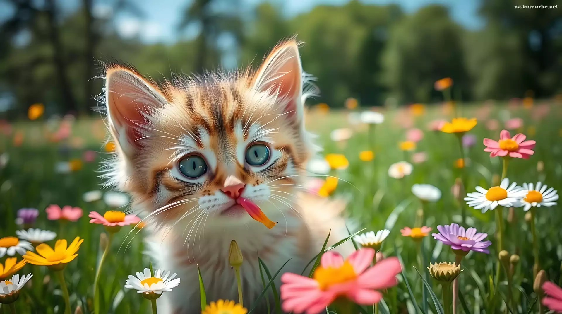 Kwiaty, Grafika AI, Kot, Łąka na Komórkę