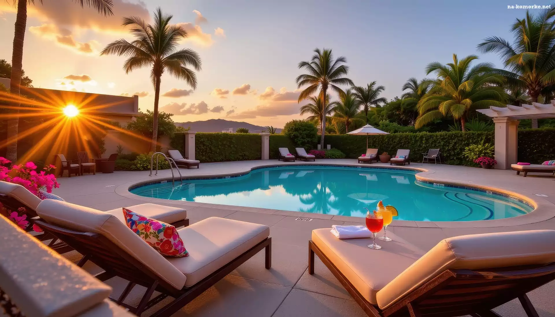 Palmy, Grafika AI, Basen, Leżaki na Komórkę