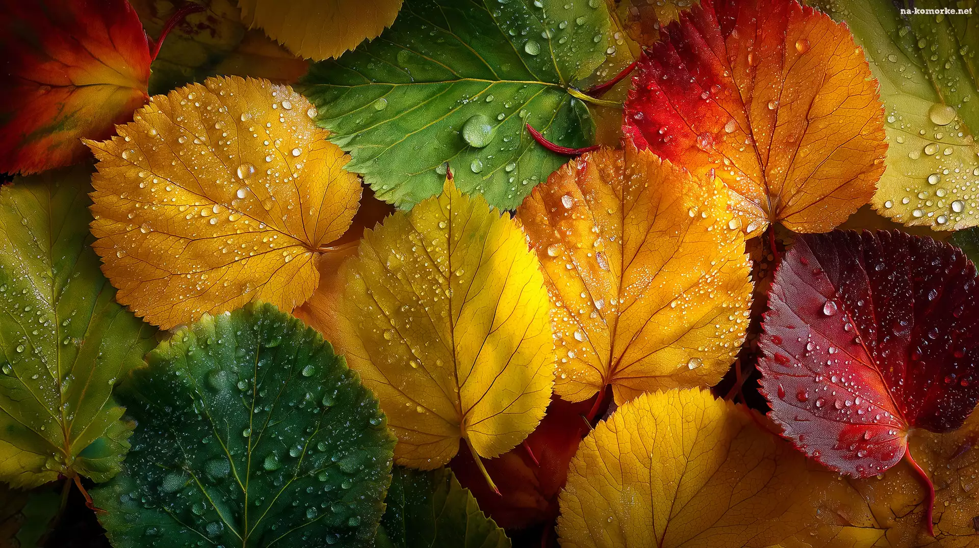 Krople, Grafika AI, Kolorowe, Liście na Komórkę