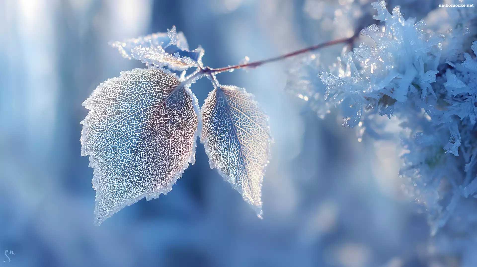 Gałązka, Grafika AI, Zmarznięte, Liście na Komórkę