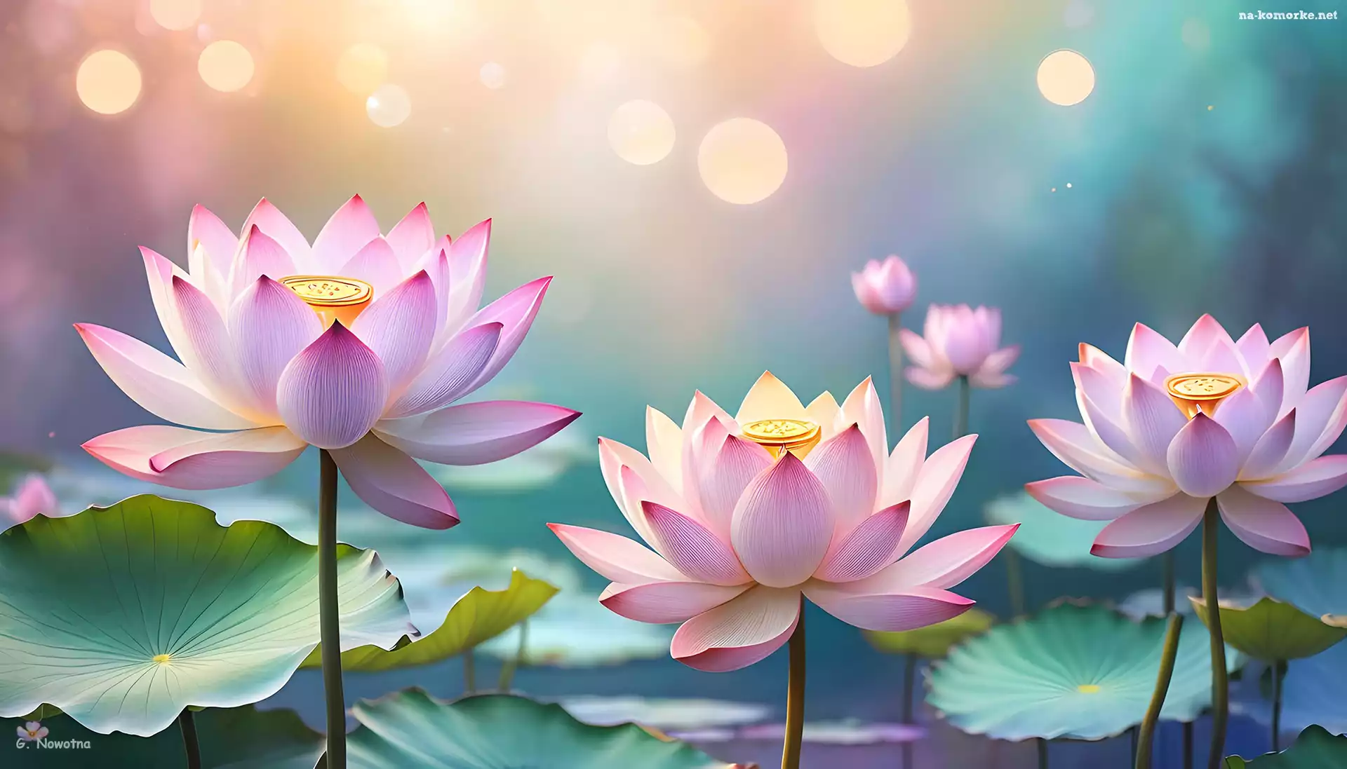 Kwiaty, Grafika AI, Różowe, Lotosy na Komórkę