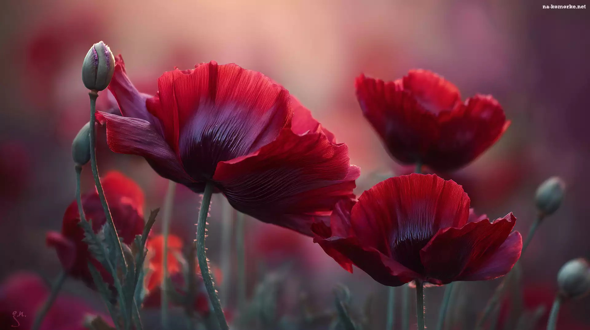 Kwiaty, Grafika AI, Czerwone, Maki na Komórkę