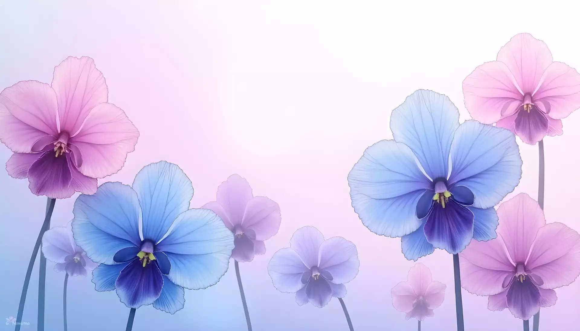 Kwiaty, Grafika AI, Różowe, Niebieskie na Komórkę