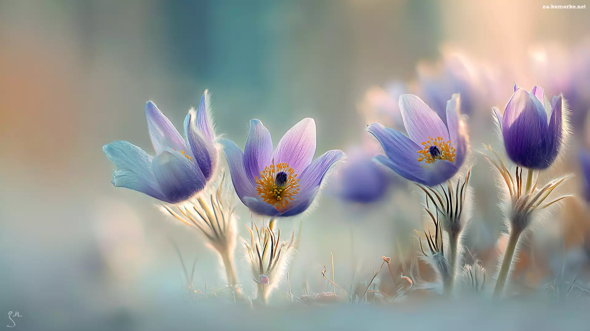 Kwiaty, Grafika AI, Cztery, Sasanki na Komórkę