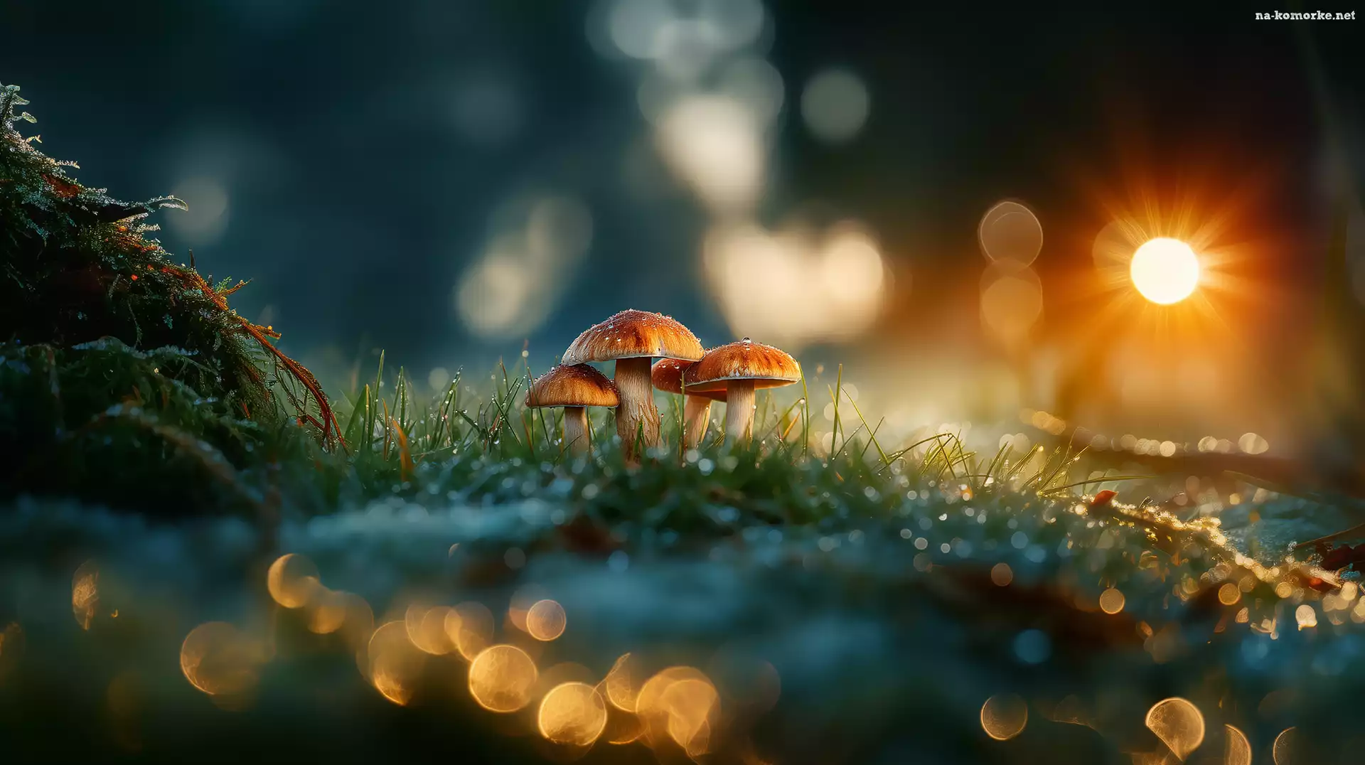 Bokeh, Grafika AI, Grzyby, Trawa na Komórkę