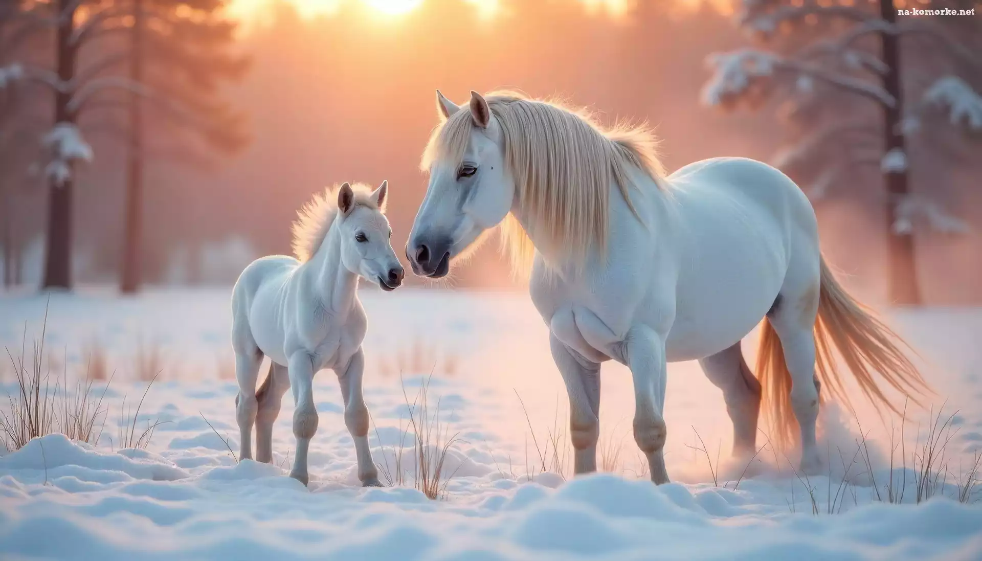 Zima, Grafika AI, Konie, Źrebak na Komórkę