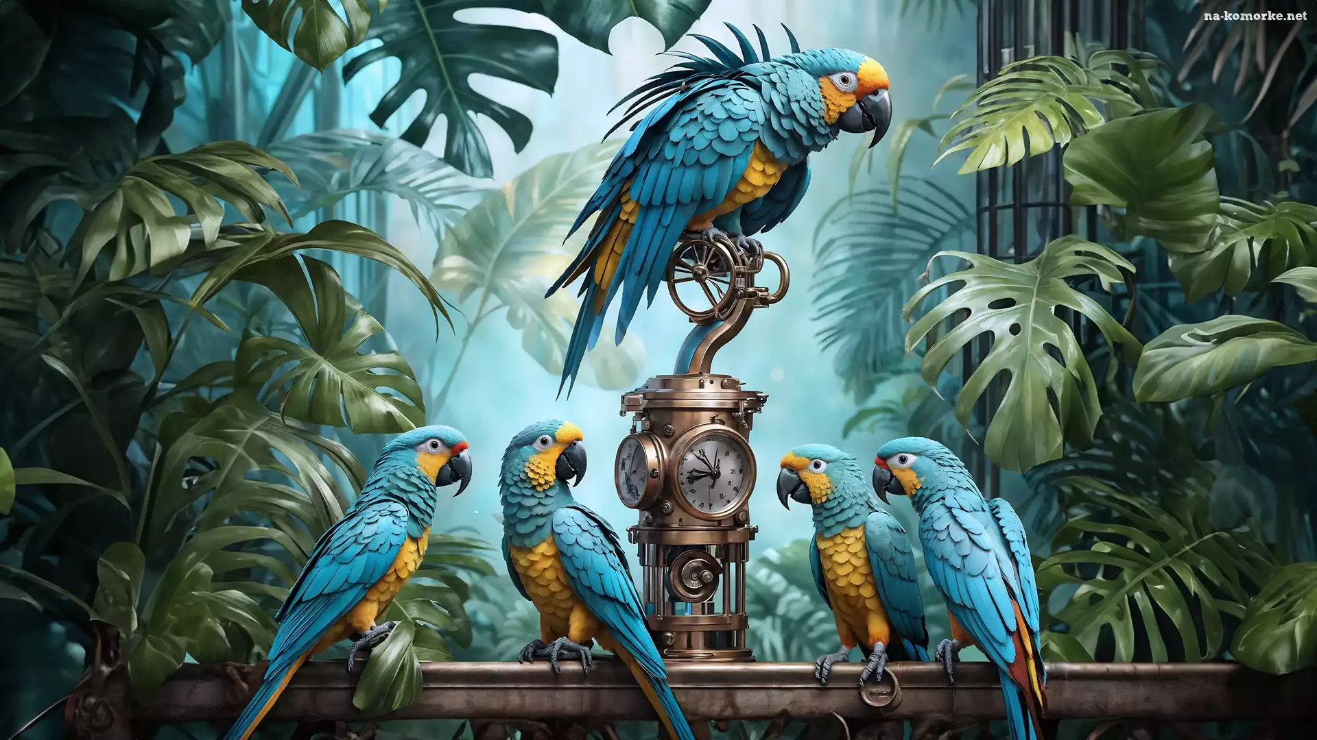 Monstera, Papugi, Liście, Grafika, Barometr, Ary na Komórkę