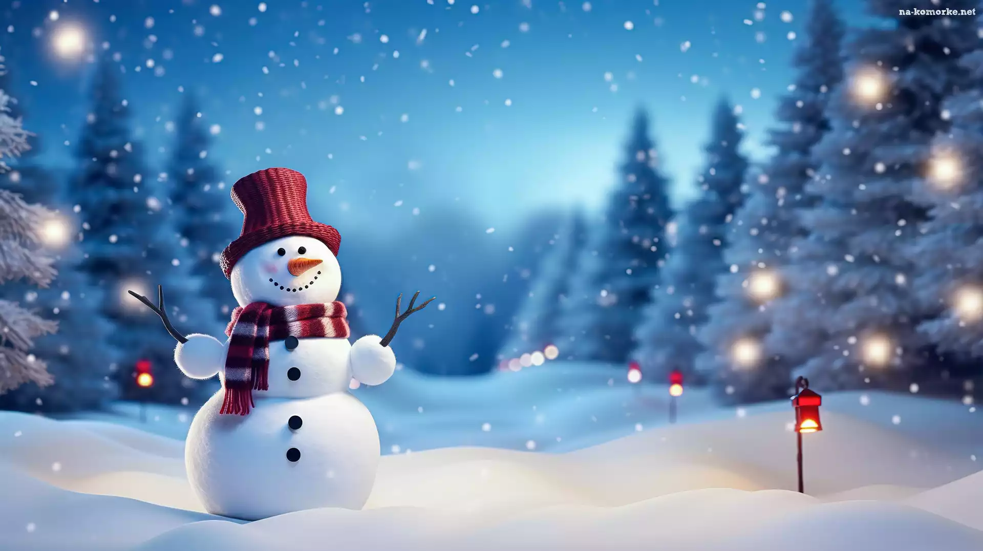 Światła, Zima, Szalik, Grafika, Czapka, Bałwan na Komórkę