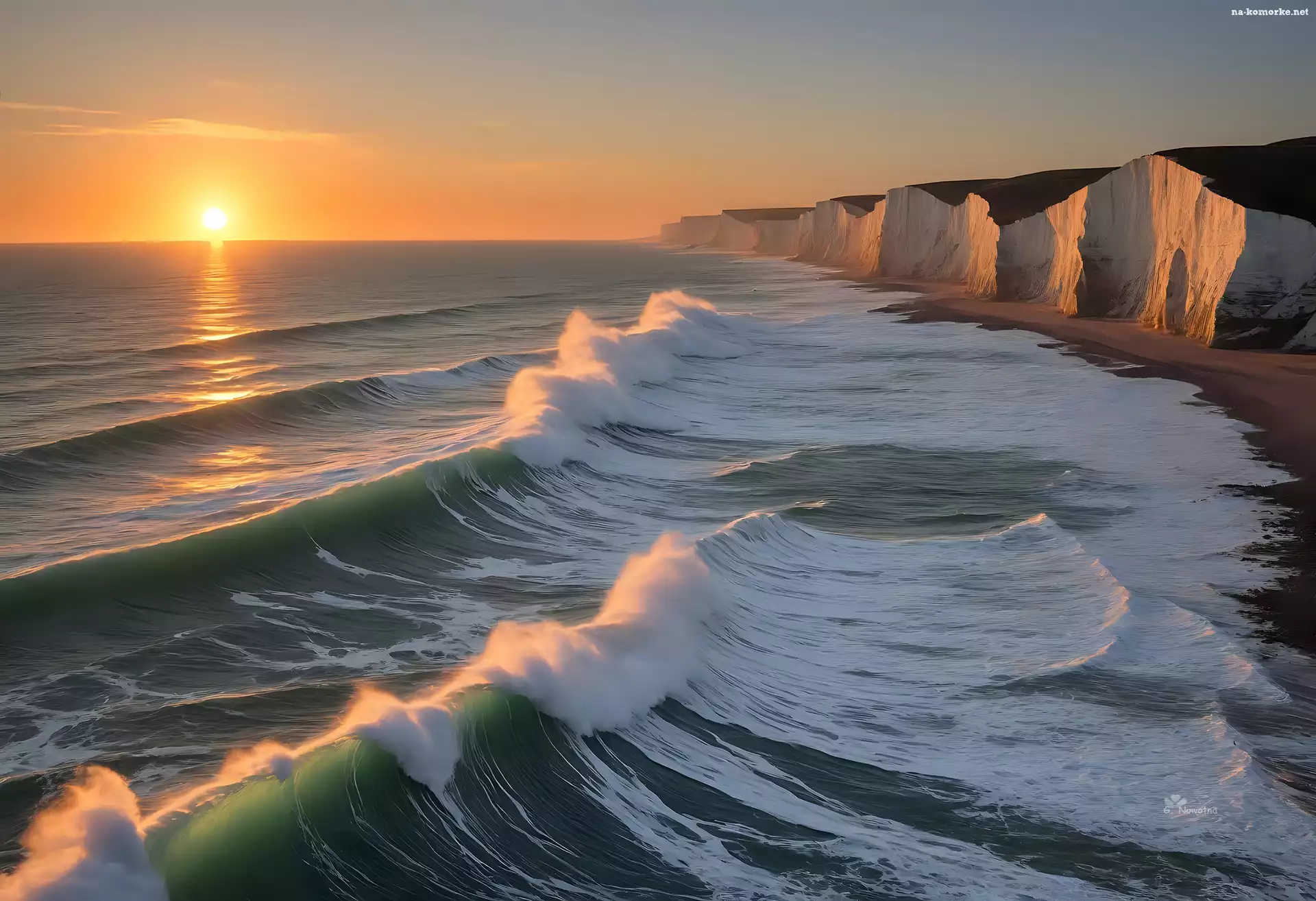 Grafika, Anglia, Klify, Morze, Seven Sisters, Wielka Brytania, Białe, Fale na Komórkę