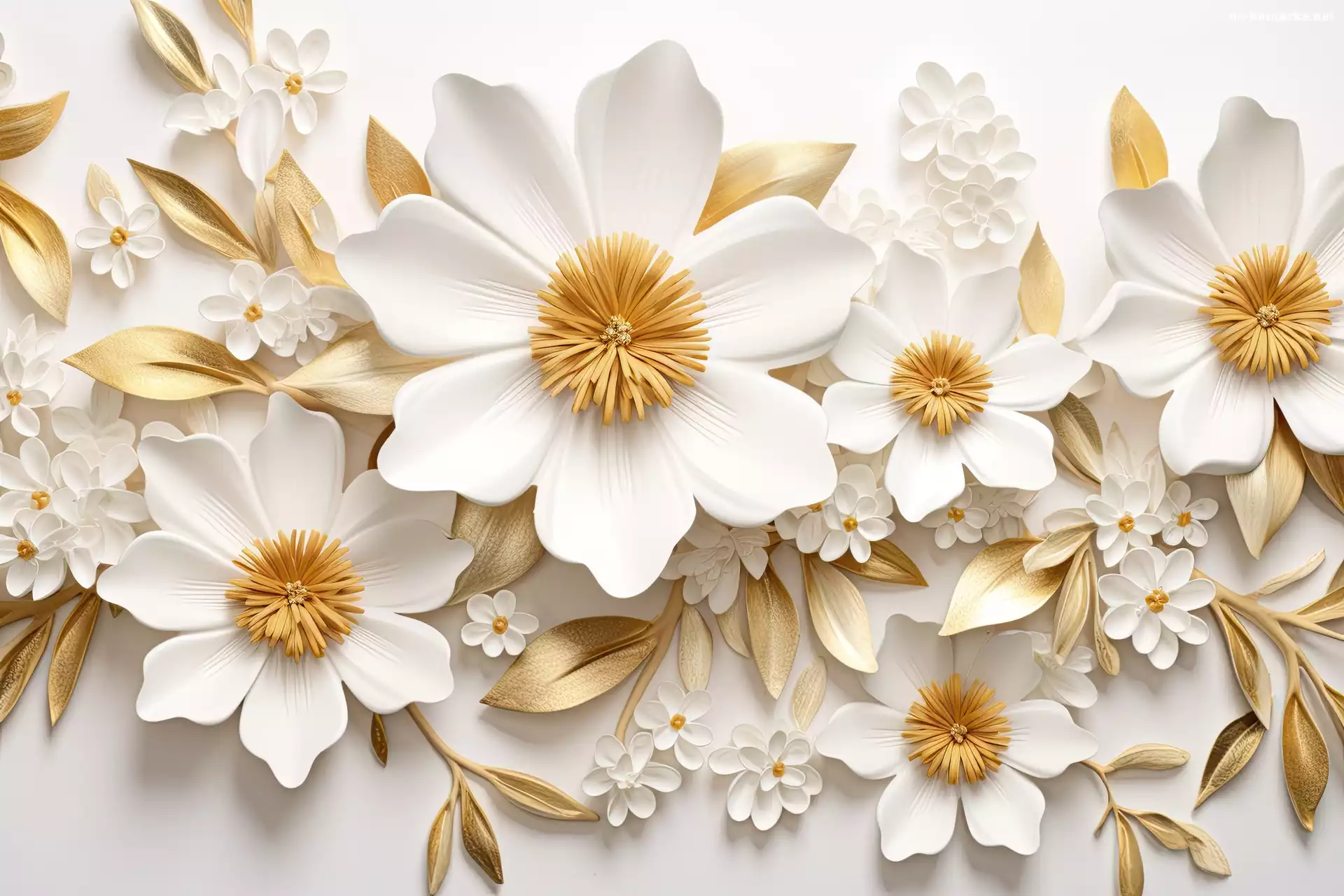 Liście, Grafika, Biało-złote, Kwiaty na Komórkę