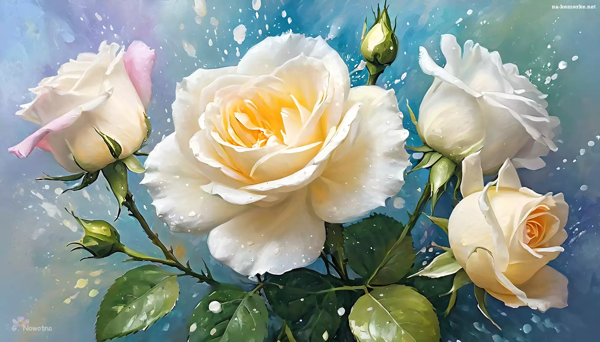 Kwiaty, Grafika, Biało-kremowe, Róże na Komórkę