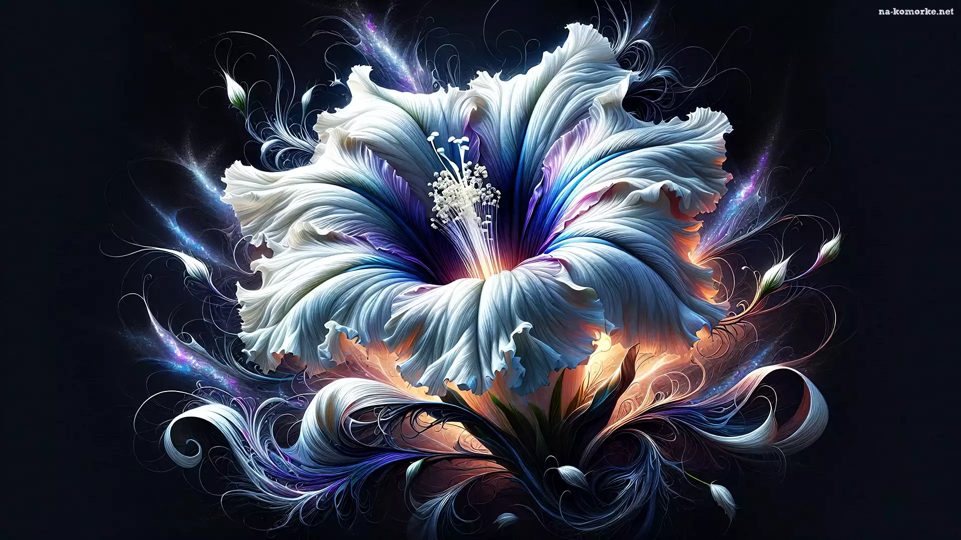 Tło, Hibiskus, Ciemne, Grafika, Kwiat, Biały na Komórkę