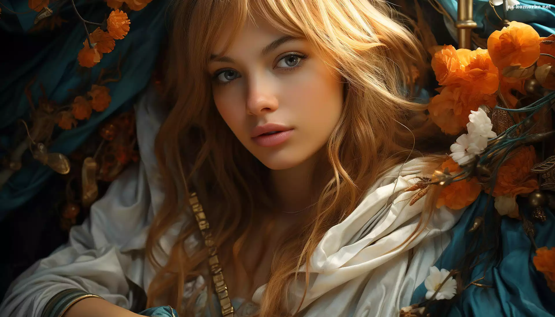 Kwiaty, Dziewczyna, Bluzka, Grafika, Biała, Blondynka na Komórkę
