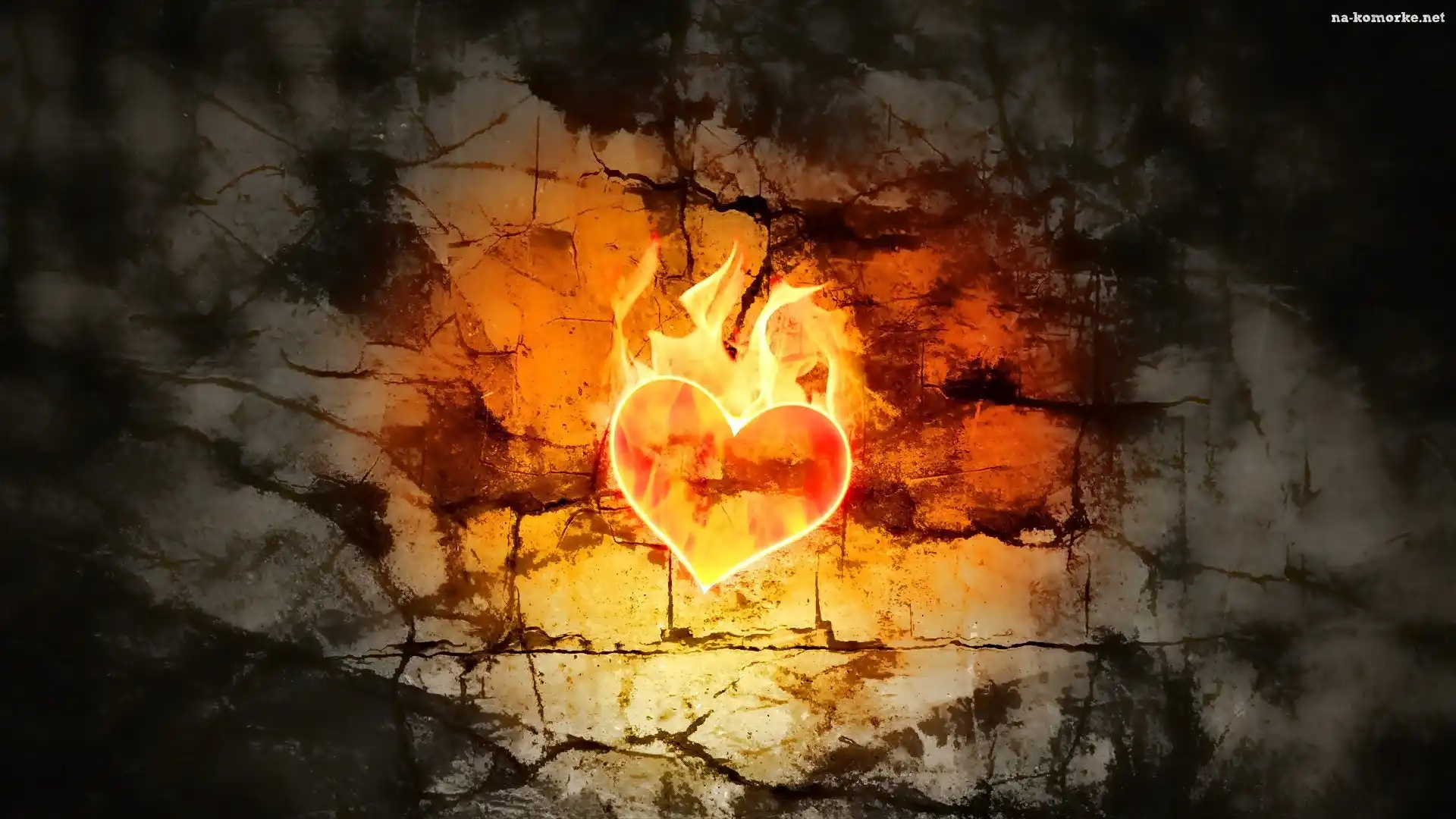 Grafika, Ogień, Ściana, Serce na Komórkę