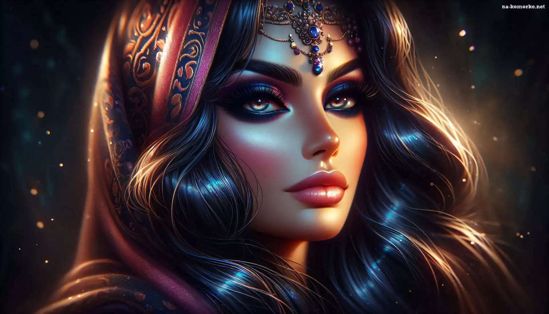 Chusta, Kobieta, Biżuteria, Grafika, Makijaż, Ciemnowłosa na Komórkę