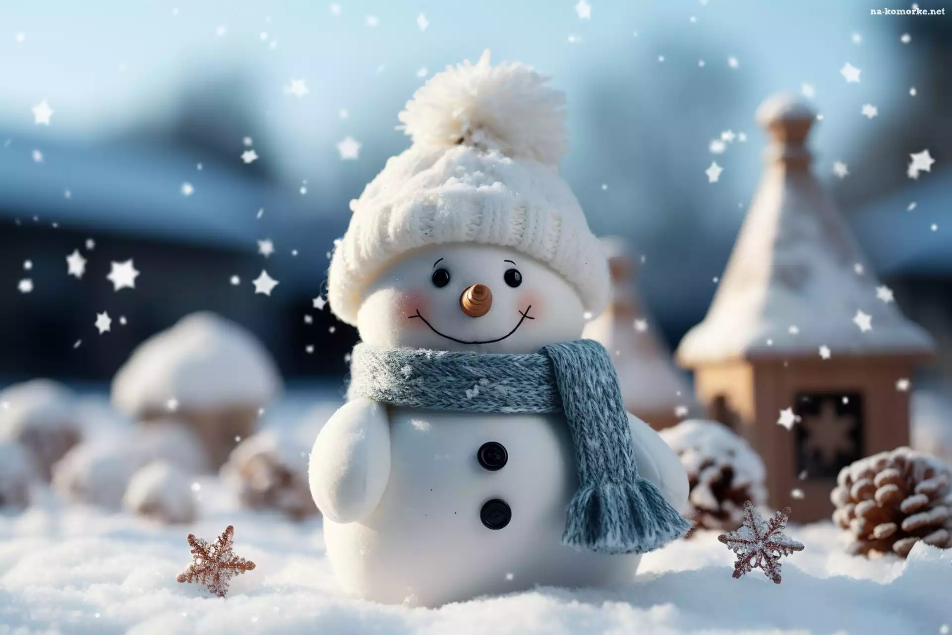 Zima, Bałwan, Gwiazdy, Grafika, Szalik, Czapka na Komórkę