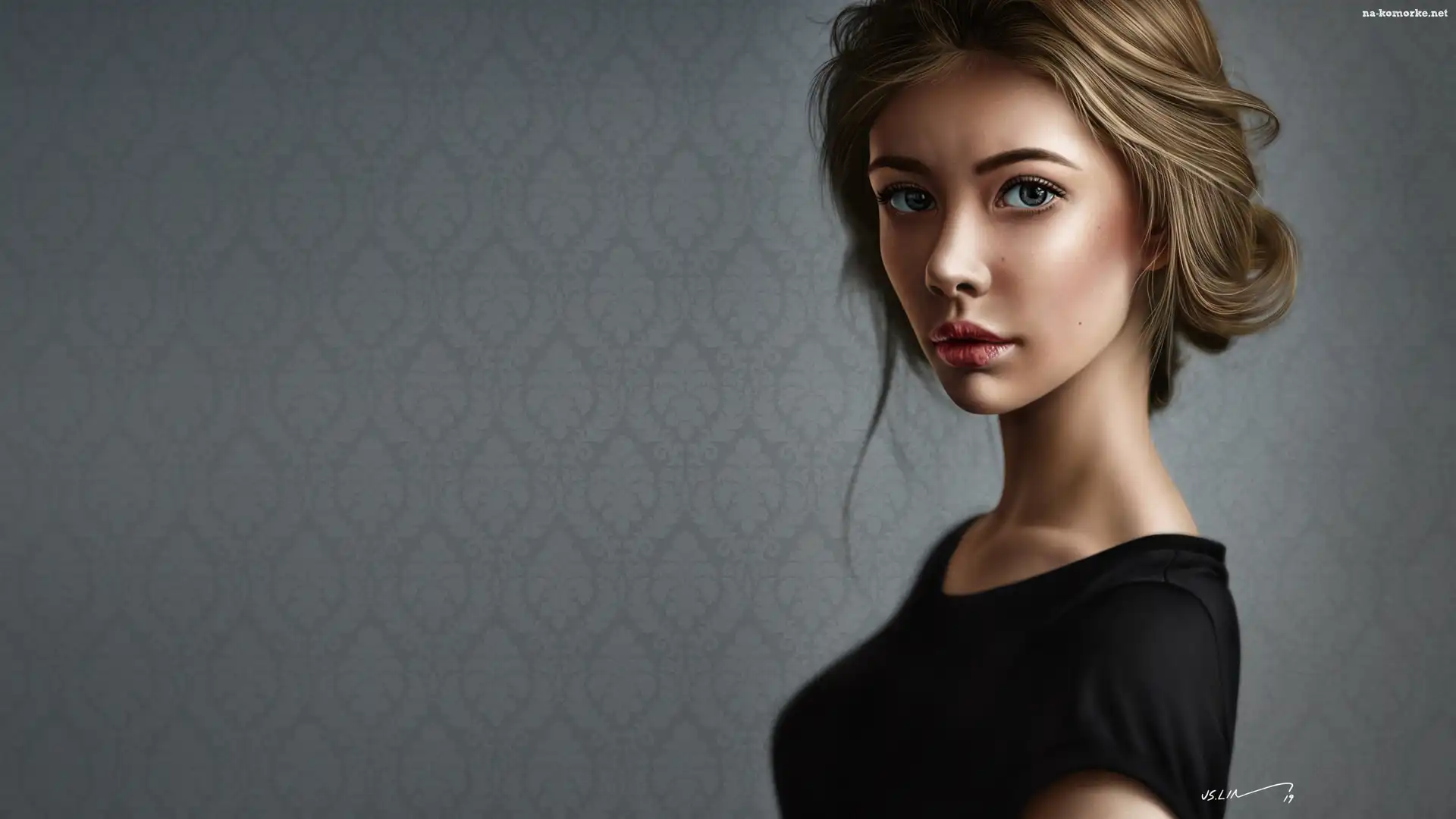 Grafika, Dziewczyna, Szatynka, Czarna, Bluzka na Komórkę