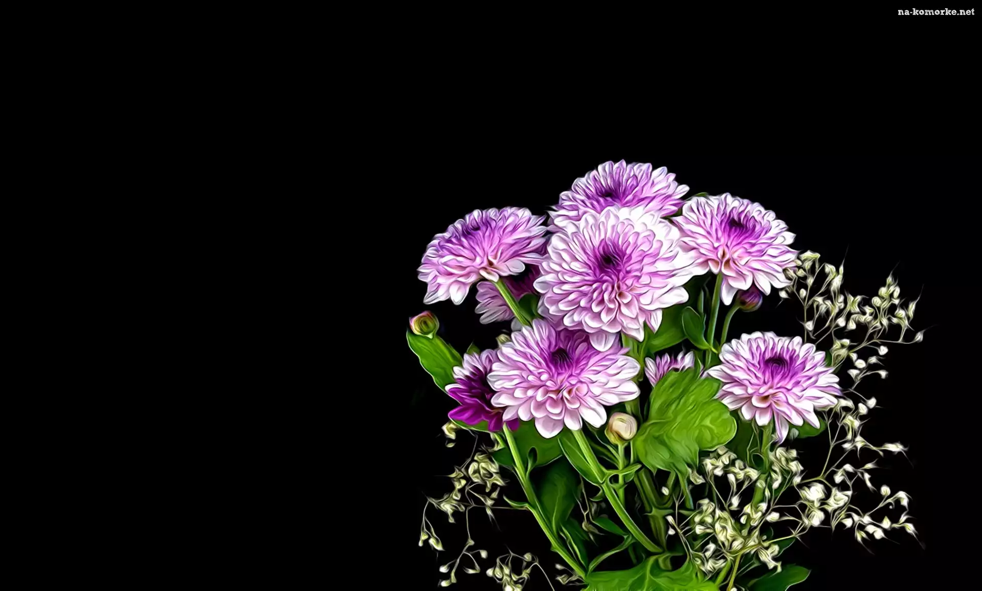 Grafika, Kwiaty, Chryzantemy, Czarne, Tło na Komórkę