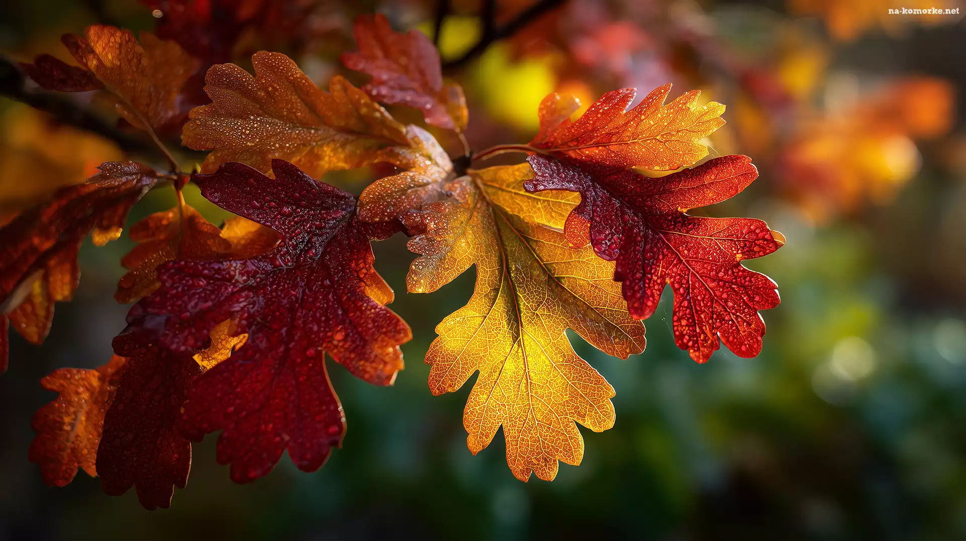 Krople, Liście, Dąb, Grafika AI, Dębowe, Jesienne na Komórkę