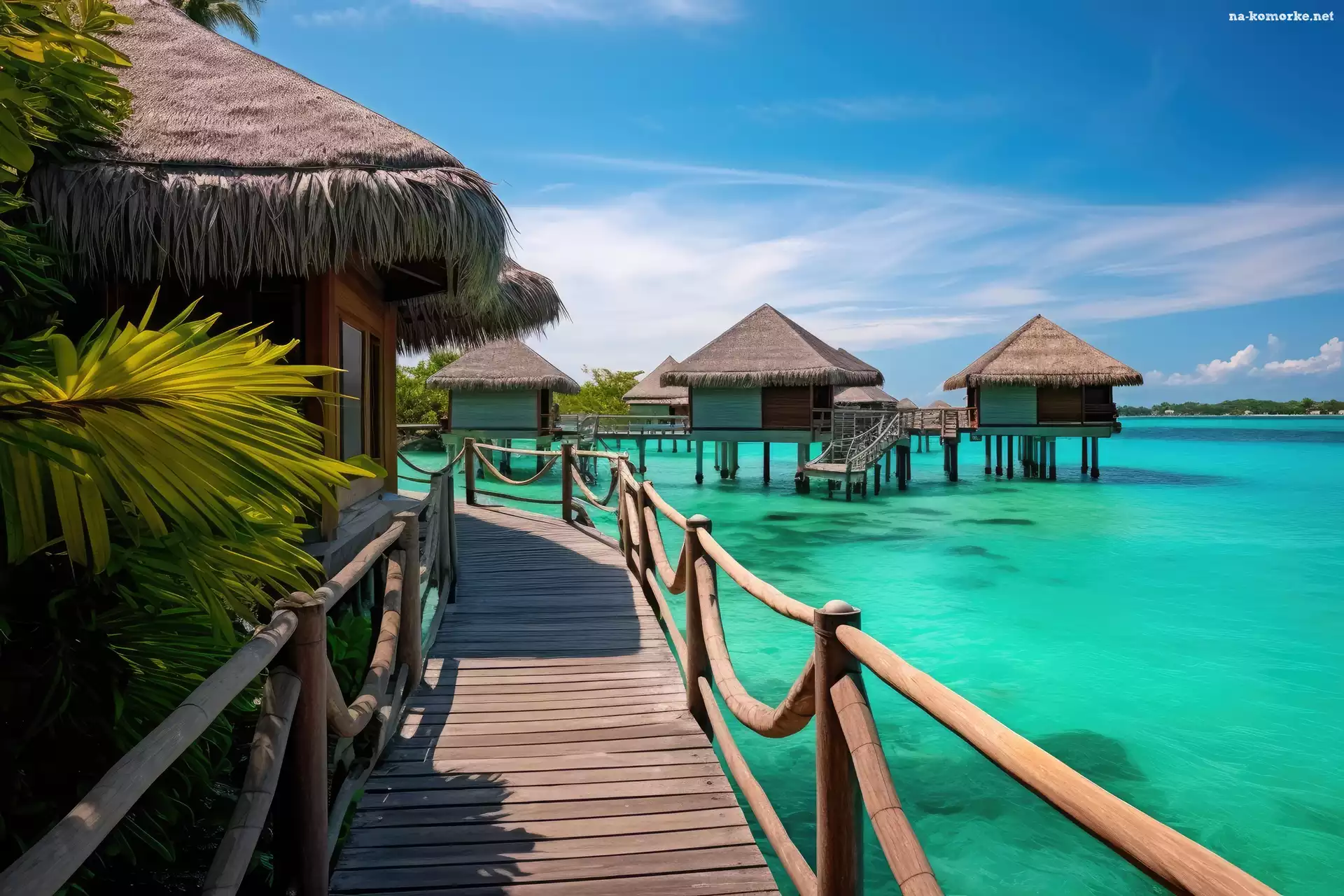 Morze, Pomost, Tropiki, Grafika, Bungalowy, Domy na Komórkę