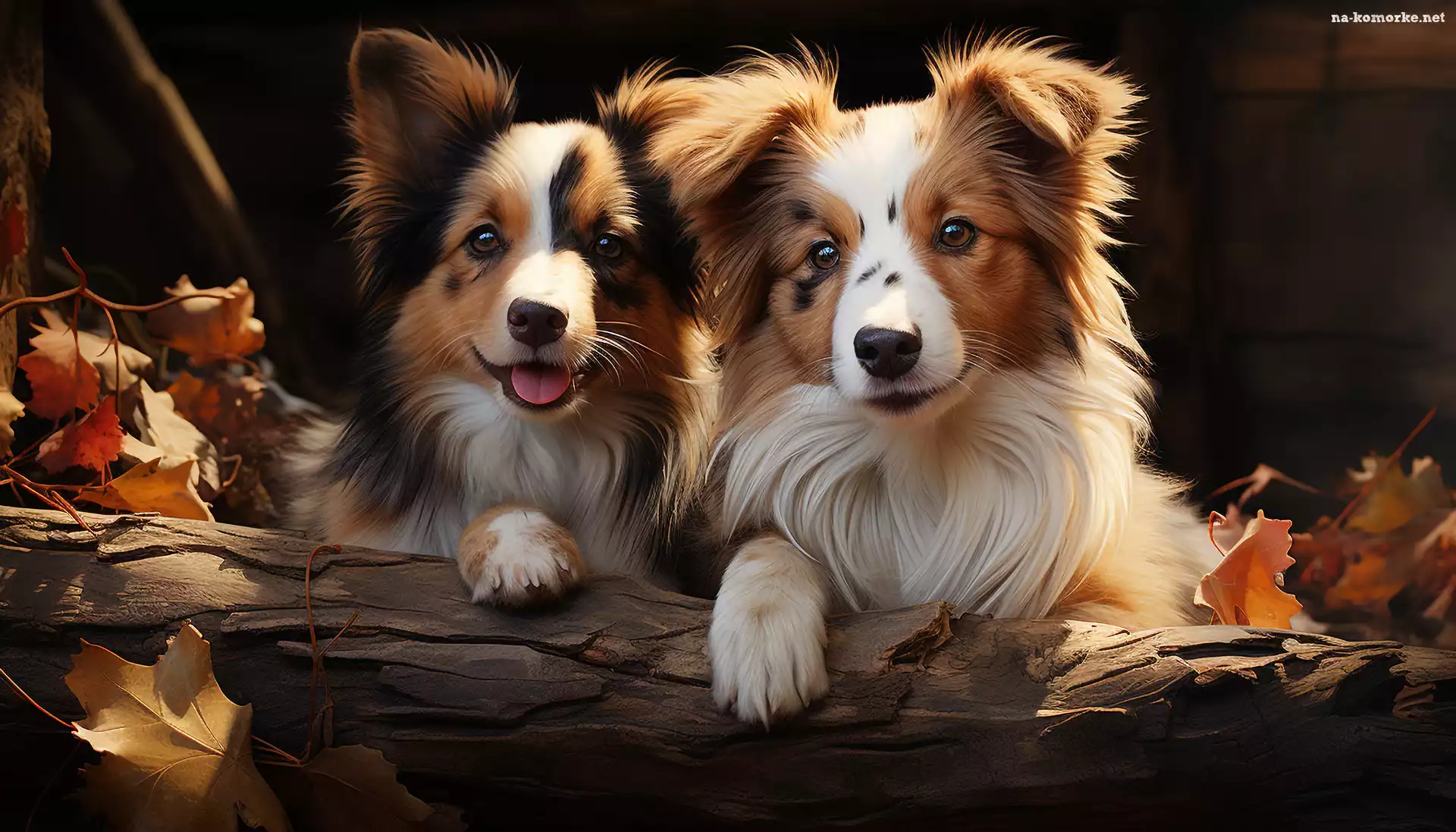 Liście, Jesień, Dwa, Grafika, Kłoda, Drzewo, Psy na Komórkę
