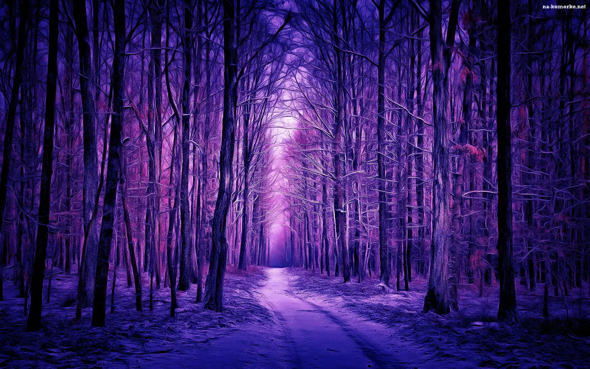Grafika, Zima, Las, Fioletowa, Barwa na Komórkę