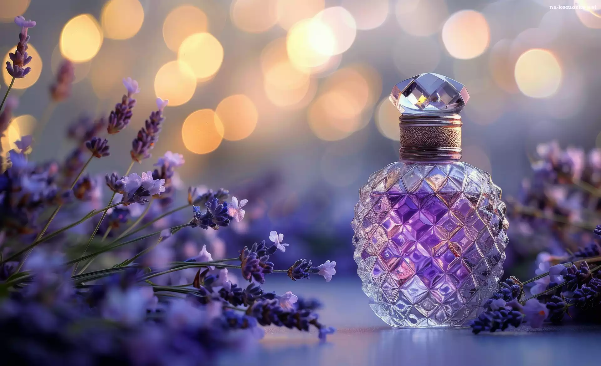 Kwiaty, Kompozycja, Lawenda, Grafika, Perfumy, Flakon na Komórkę