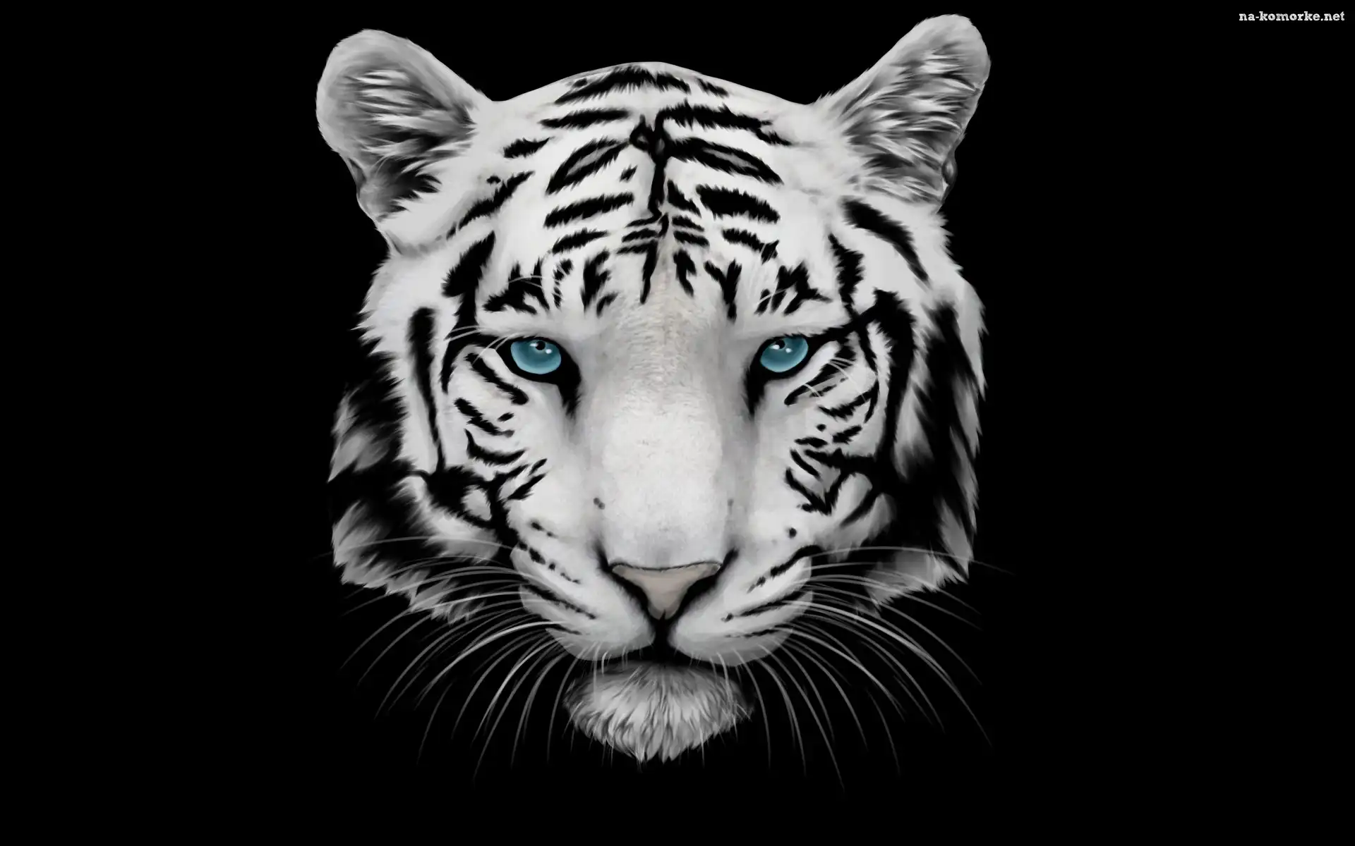 Grafika, Tło czarne, Głowa, Tygrys na Komórkę