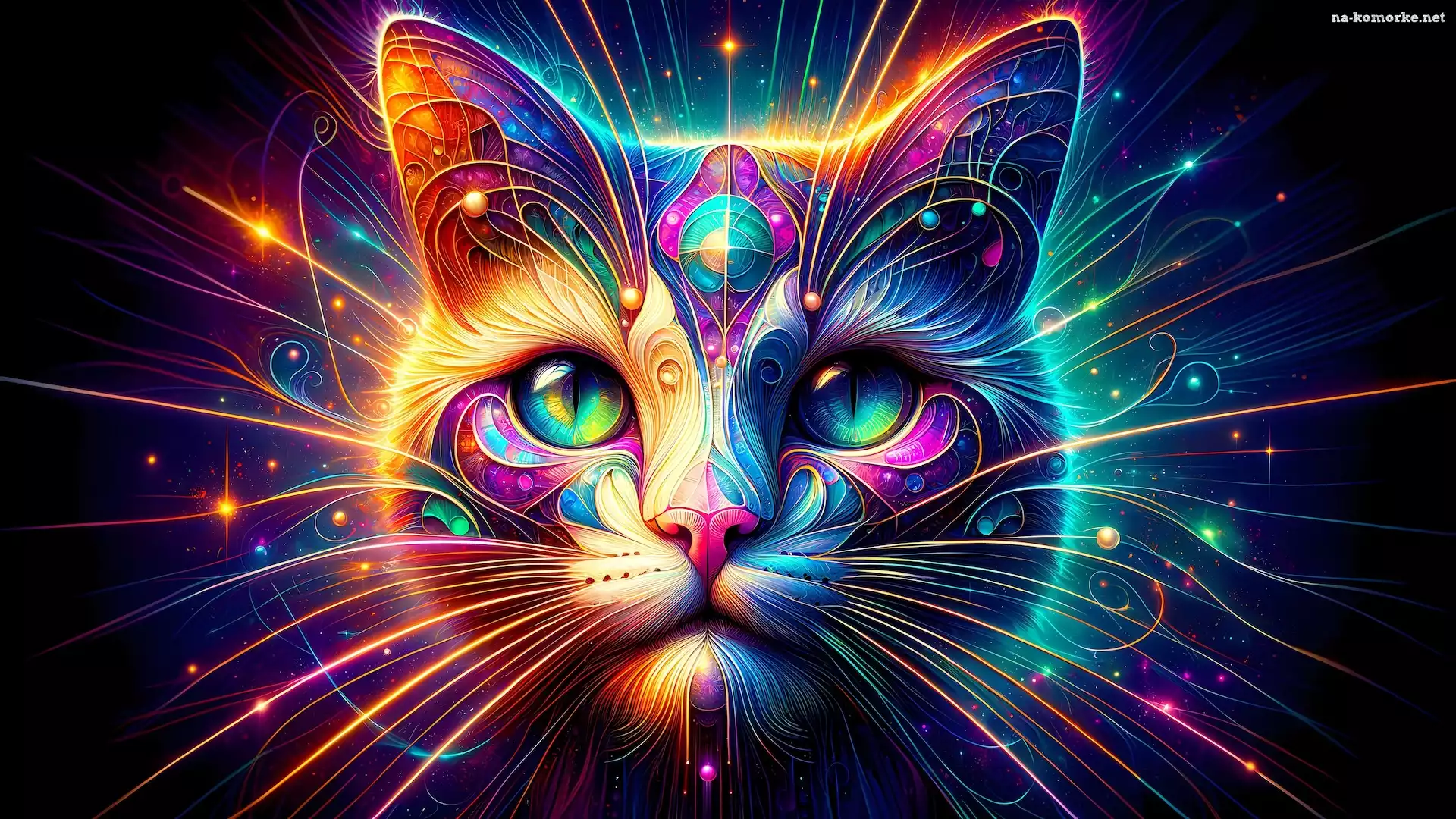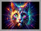 Kolorowe, Kot, Linie, Grafika, Wąsy, Głowa na Komórkę
