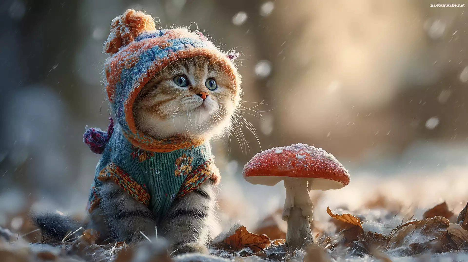 Szron, Kot, Grzyb, Grafika AI, Muchomor, Ubranko na Komórkę