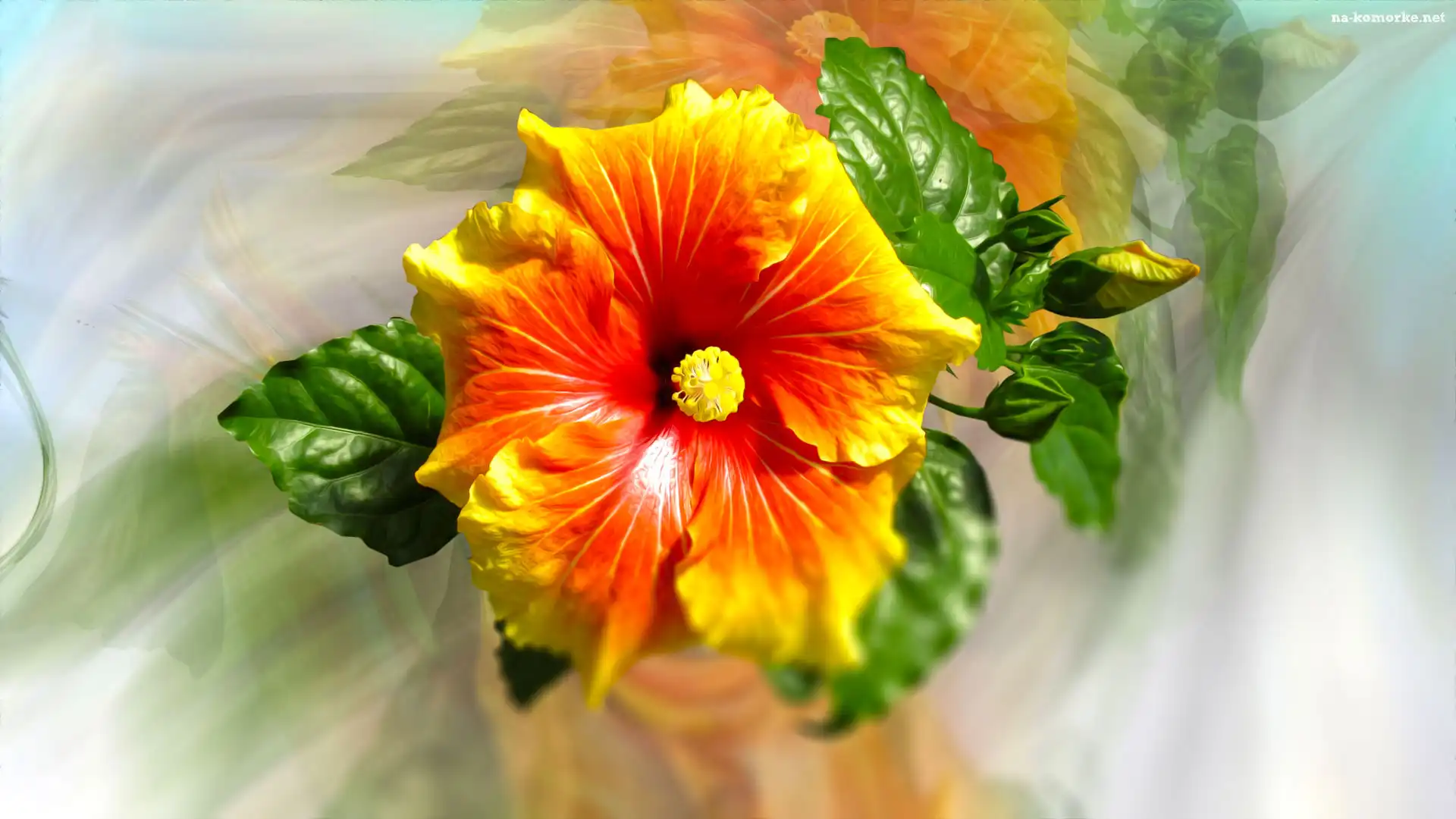 Grafika, Rozmycie, Hibiskus, Listki na Komórkę