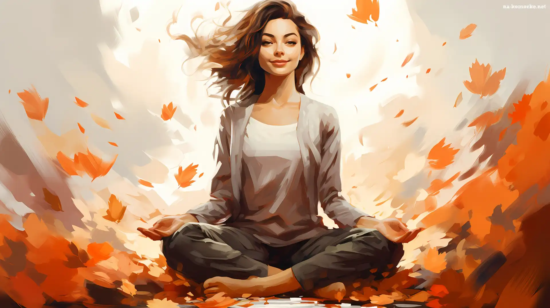 Liście, Kobieta, Jesień, Grafika, Medytacja, Joga na Komórkę