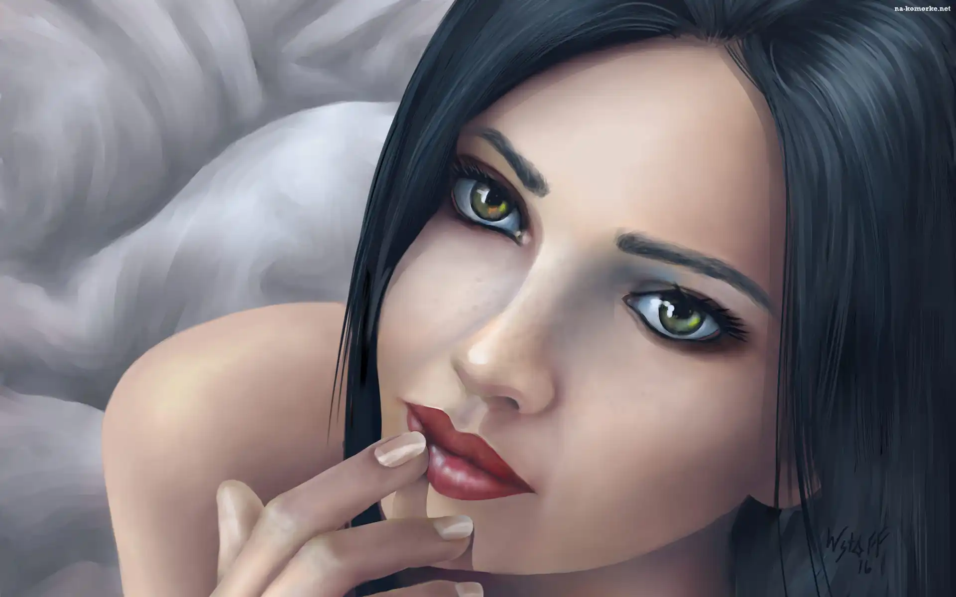 Grafika, Brunetka, Kobieta, Zielonooka na Komórkę