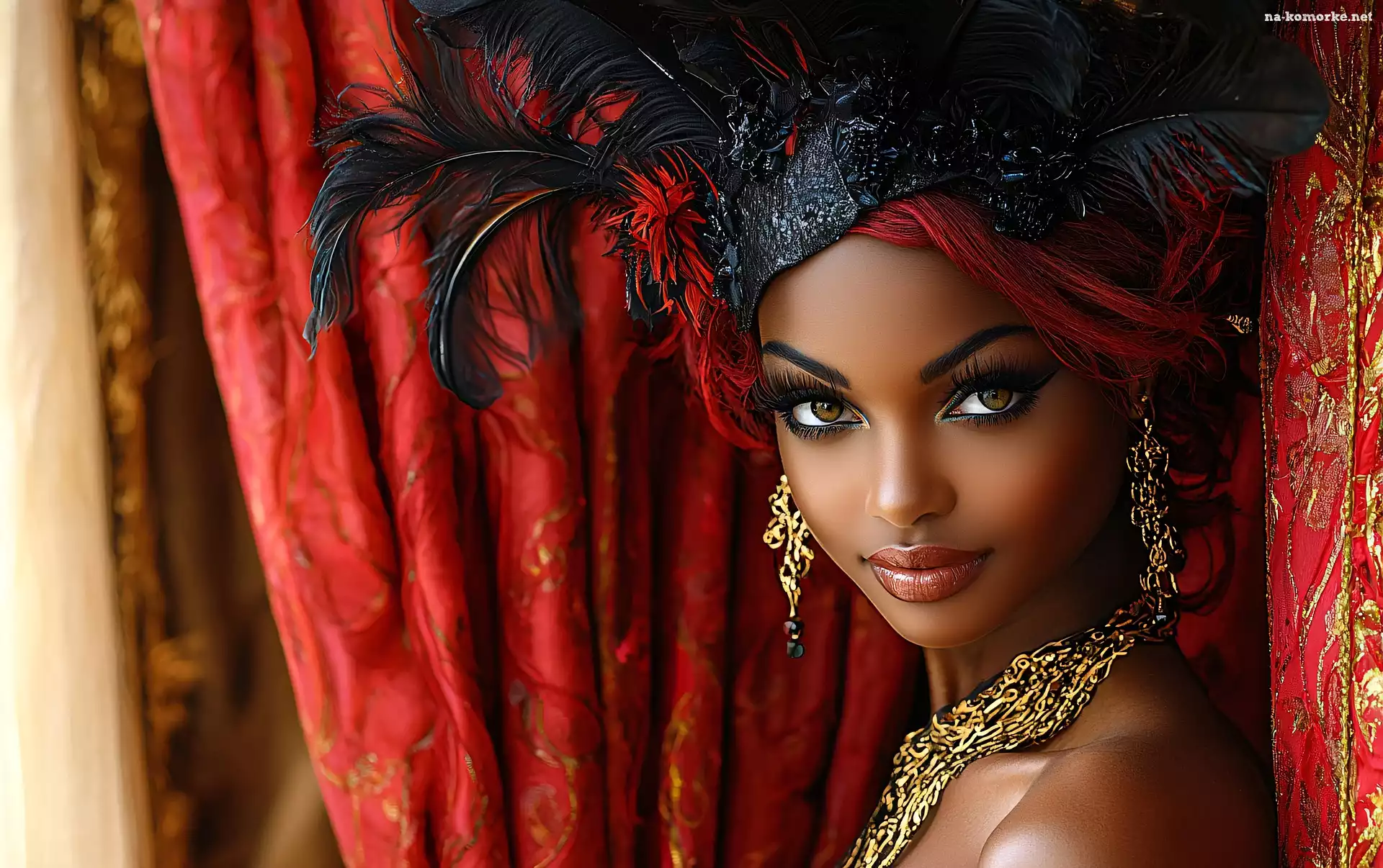 Kolczyki, Pióropusz, Kobieta, Grafika, Biżuteria, Naszyjnik, Ciemnoskóra na Komórkę