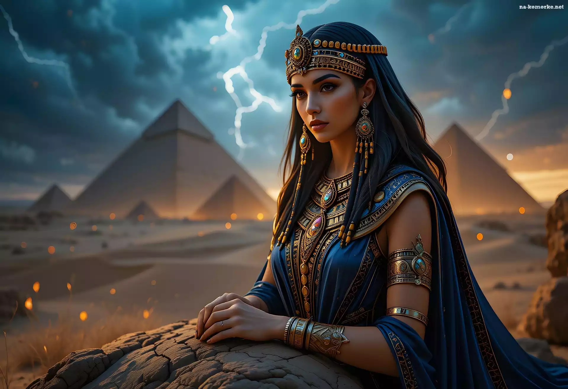 Suknia, Piramidy, Kobieta, Grafika, Biżuteria, Niebieska, Egipcjanka na Komórkę