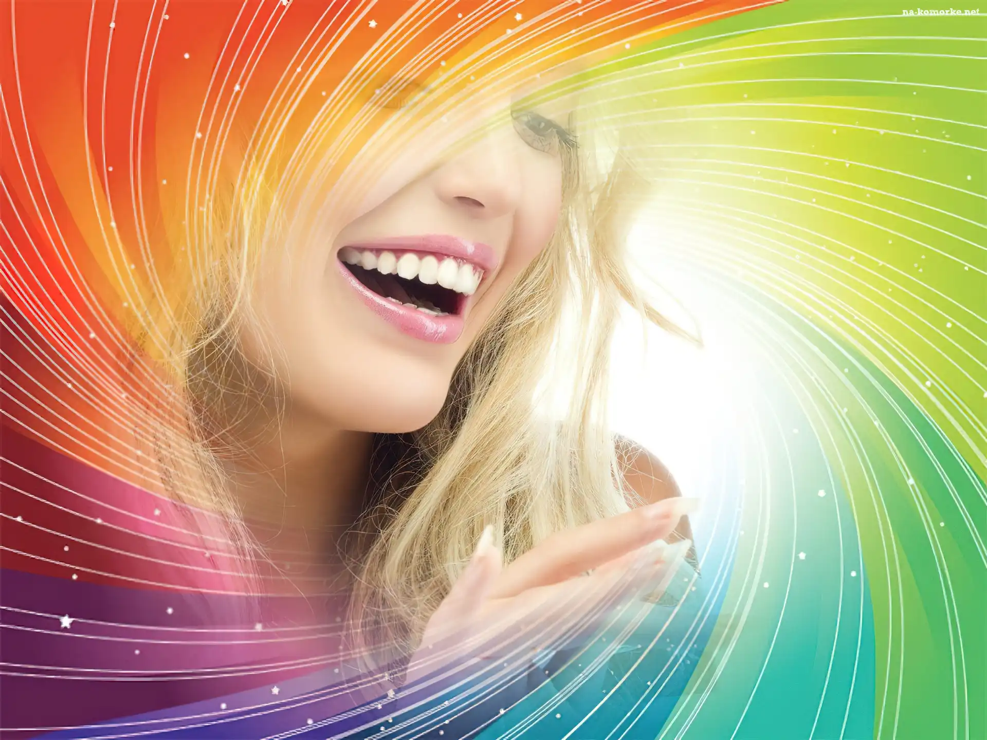 Grafika, Uśmiechnięta, Blondynka, Kolorowe, Smugi na Komórkę