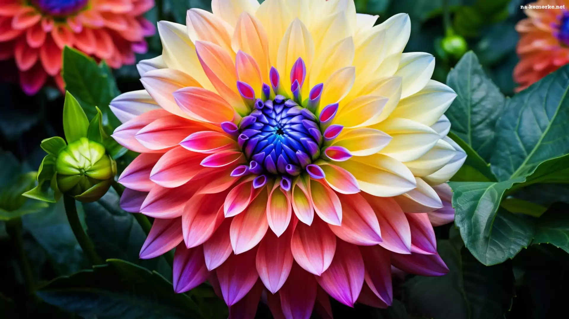 Liście, Dalia, Pąk, Grafika, Kwiat, Kolorowy na Komórkę