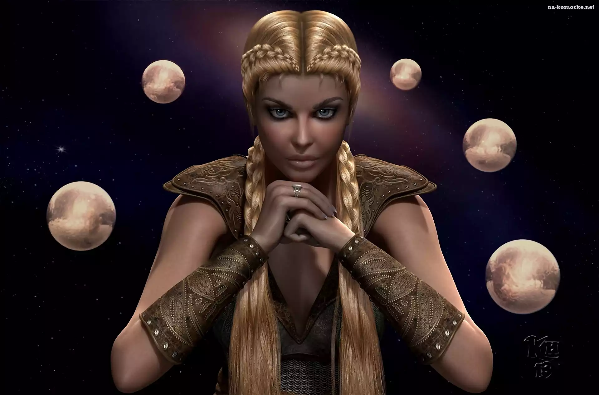 Grafika, Kobieta, Długie Włosy, Kosmos, Planety na Komórkę