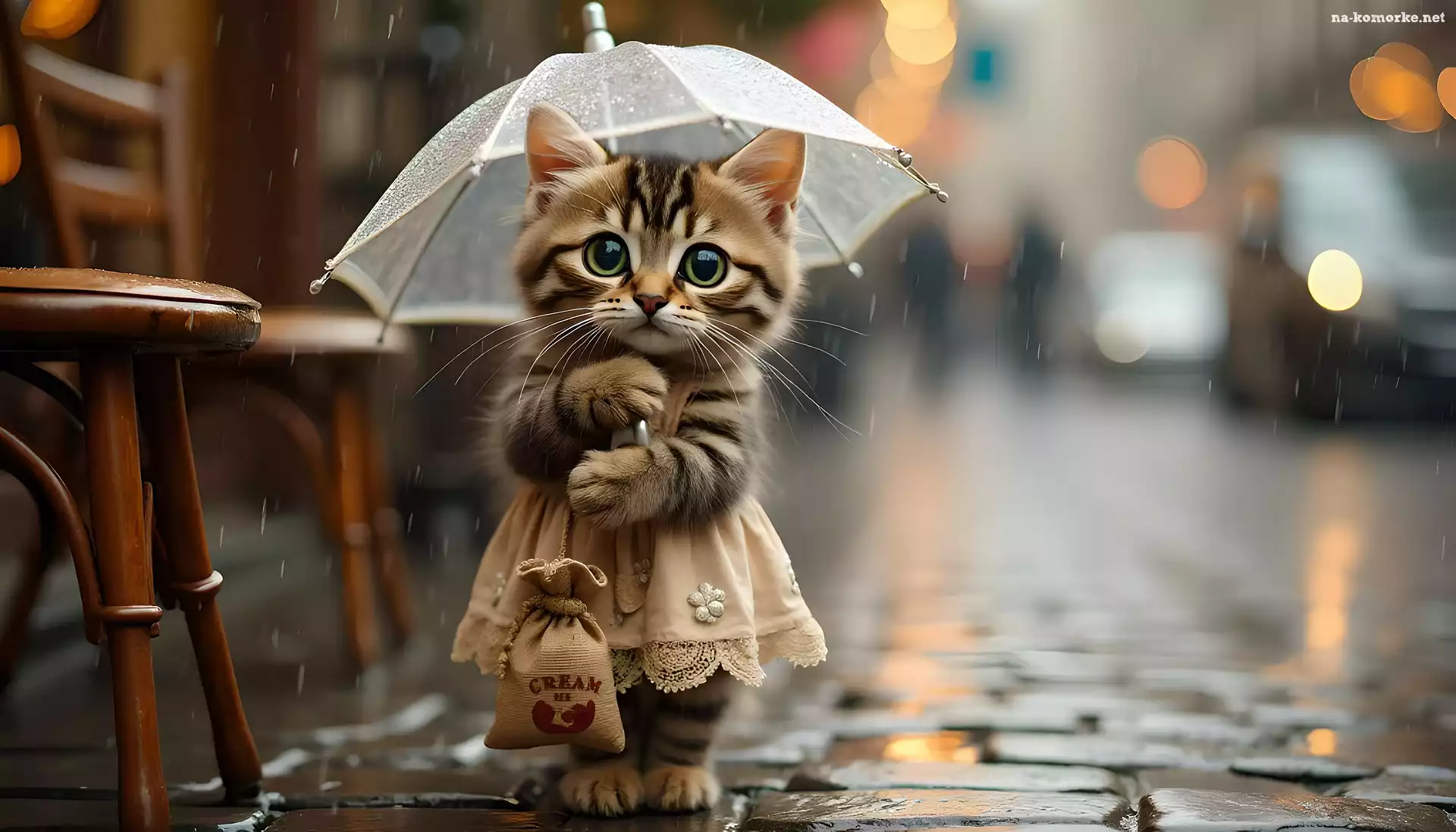 Ulica, Deszcz, Parasol, Grafika, Spódnica, Kot na Komórkę