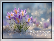 Śnieg, Kwiaty, Krokusy, Grafika AI, Fioletowe, Kępka na Komórkę