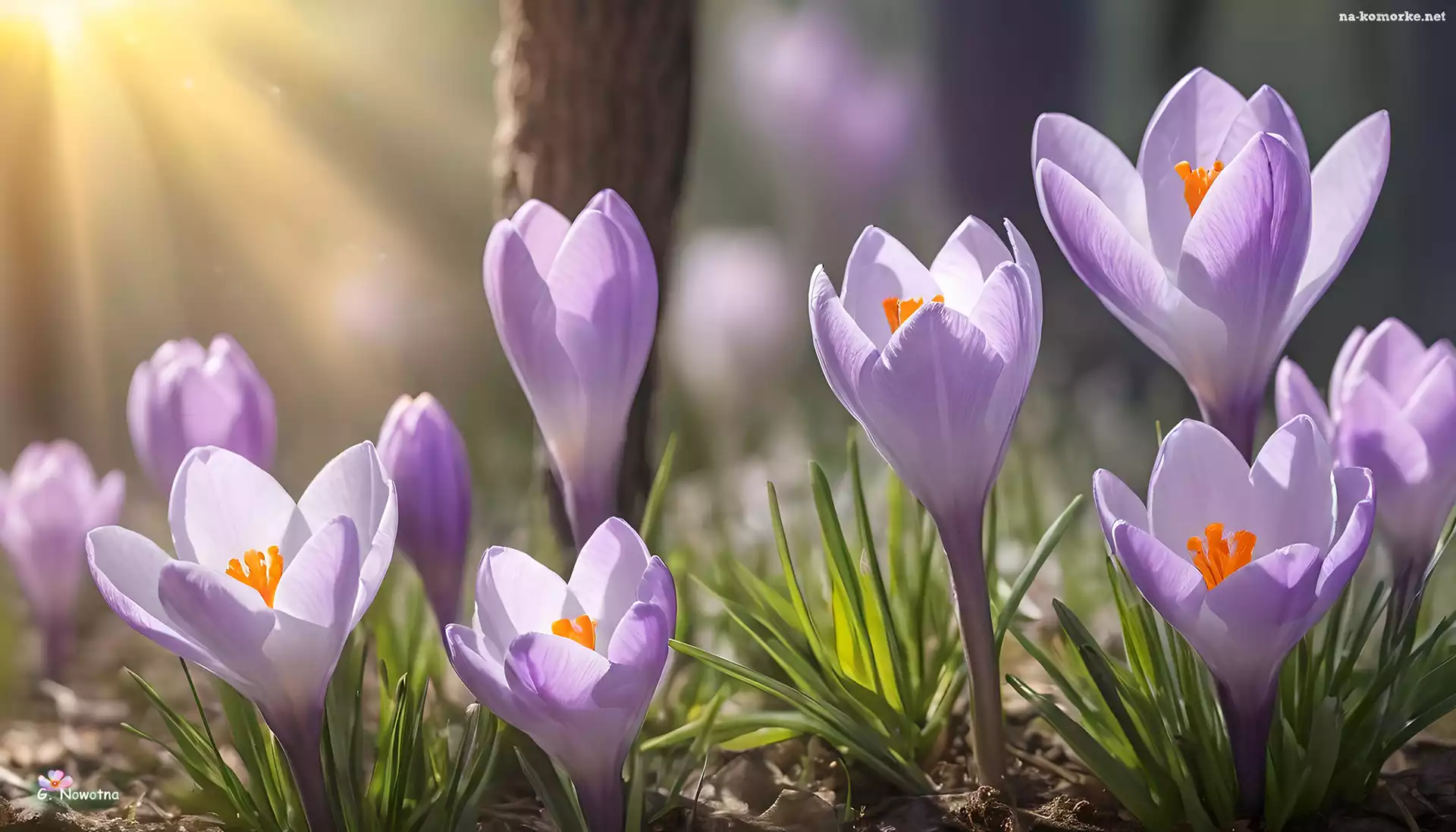 Światło, Fioletowe, Słoneczne, Grafika, Kwiaty, Krokusy na Komórkę